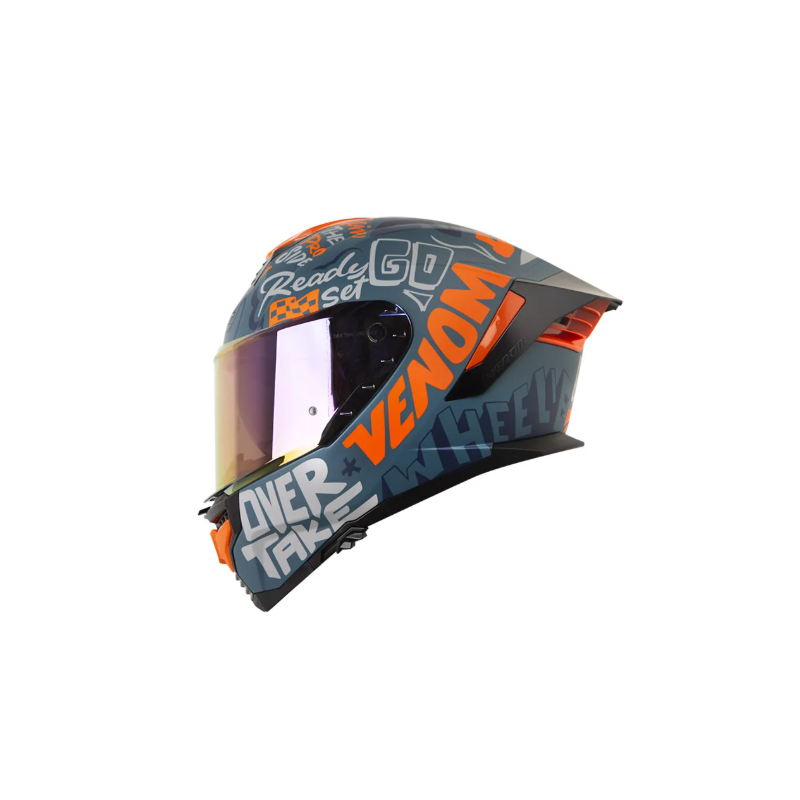 Diseñado para quienes buscan seguridad, estilo y personalidad, este casco integral combina un diseño gráfico moderno y llamativo con la protección que todo motociclista necesita. Su estructura resistente ofrece una excelente absorción de impactos, mientras que su interior acolchado brinda un ajuste cómodo incluso en trayectos largos.