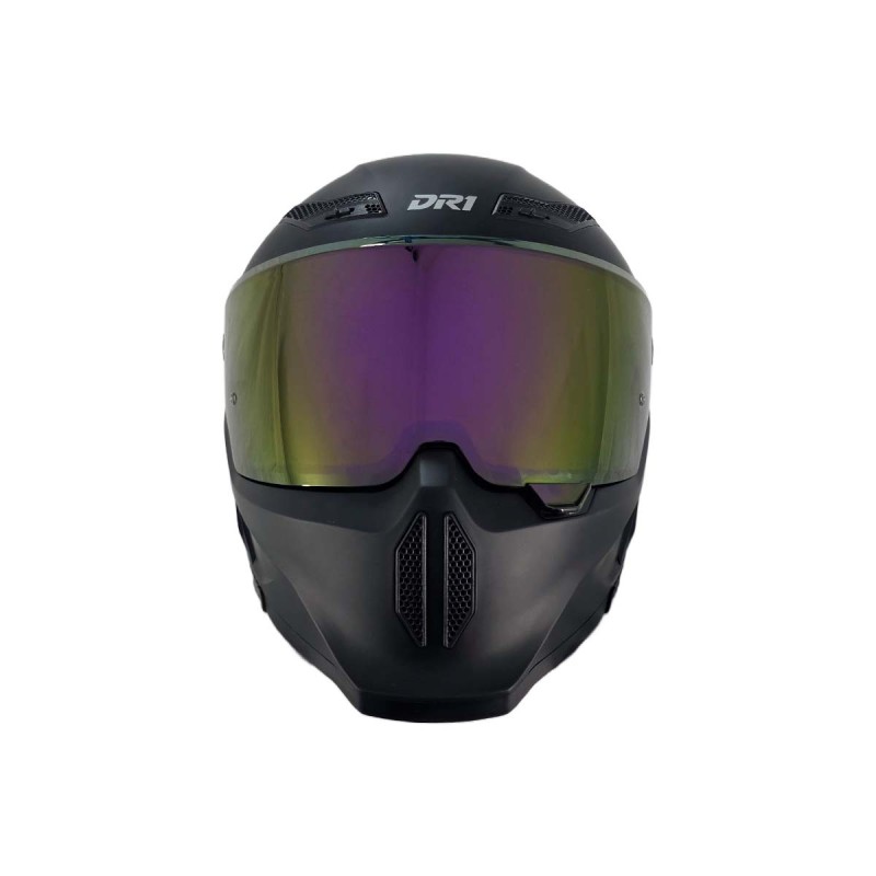 Casco Integral DR1 Negro Mate con Spoiler Fucsia y Visor Iridium Fucsia