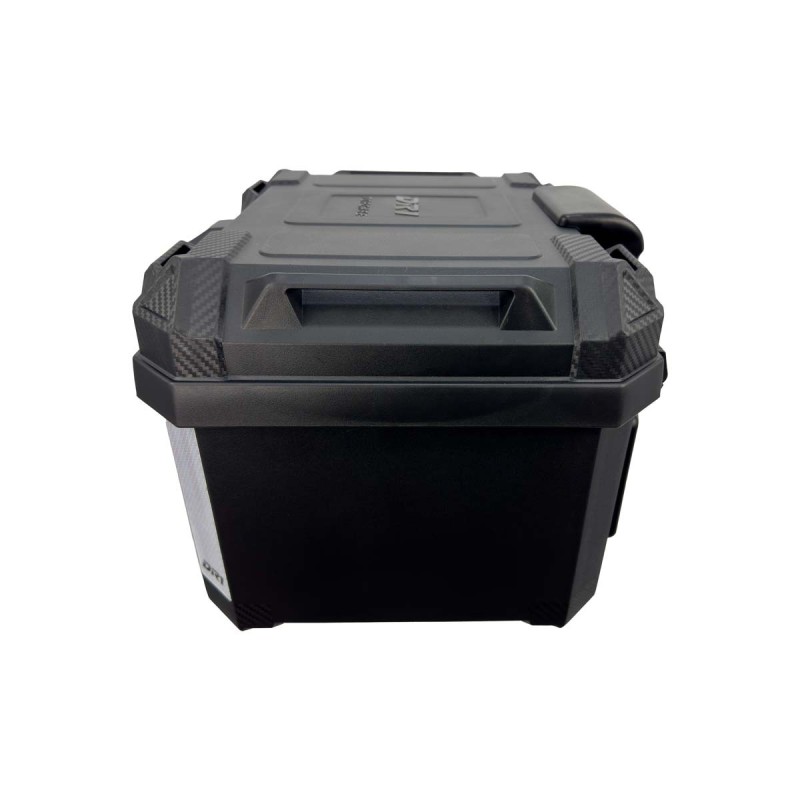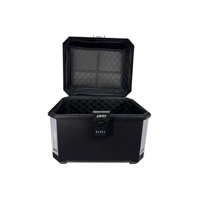 El Maletero DR1 45 LT Five Digits combina diseño, funcionalidad y un sistema de seguridad que lo diferencia del resto. Con capacidad de 45 litros, ofrece el espacio ideal para el uso diario o viajes largos, permitiendo transportar tus pertenencias con total comodidad.