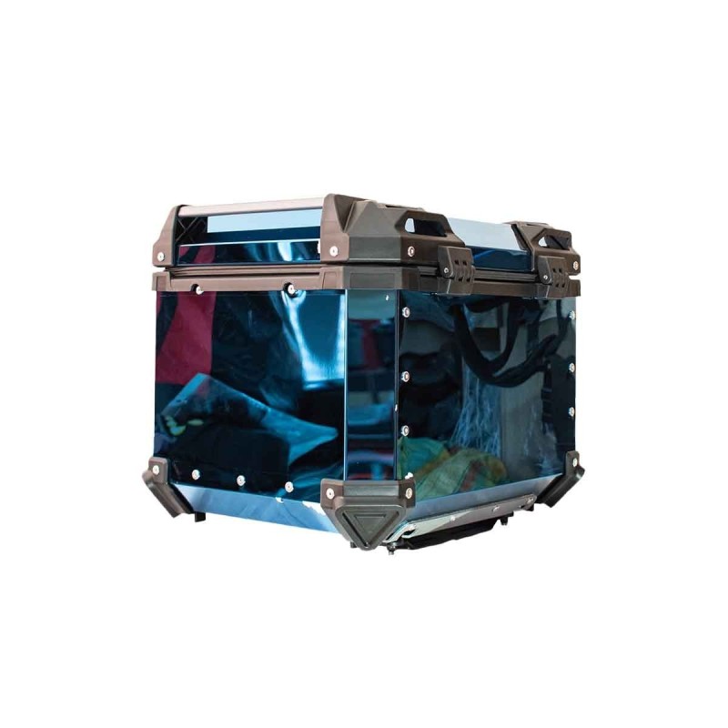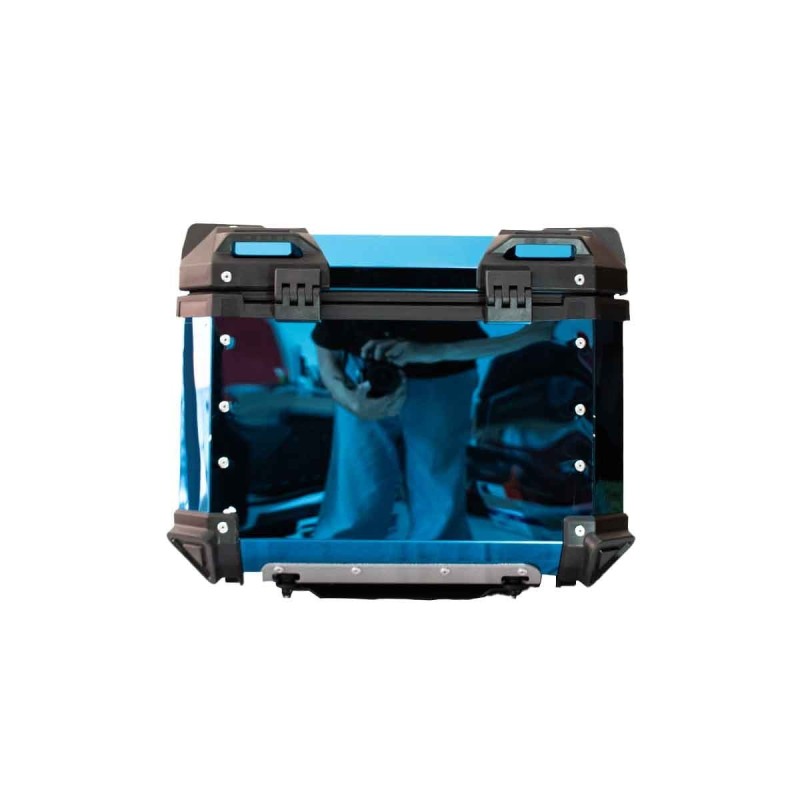 Fabricada en polímeros de alta resistencia. Volumen 30 litros. Carga máxima 3 kg Capacidad: 1 casco integral. Dimensiones: Ancho 40.9cm / Alto 33.1cm / Fondo 40.3cm Incluye Base y Tornillería original.