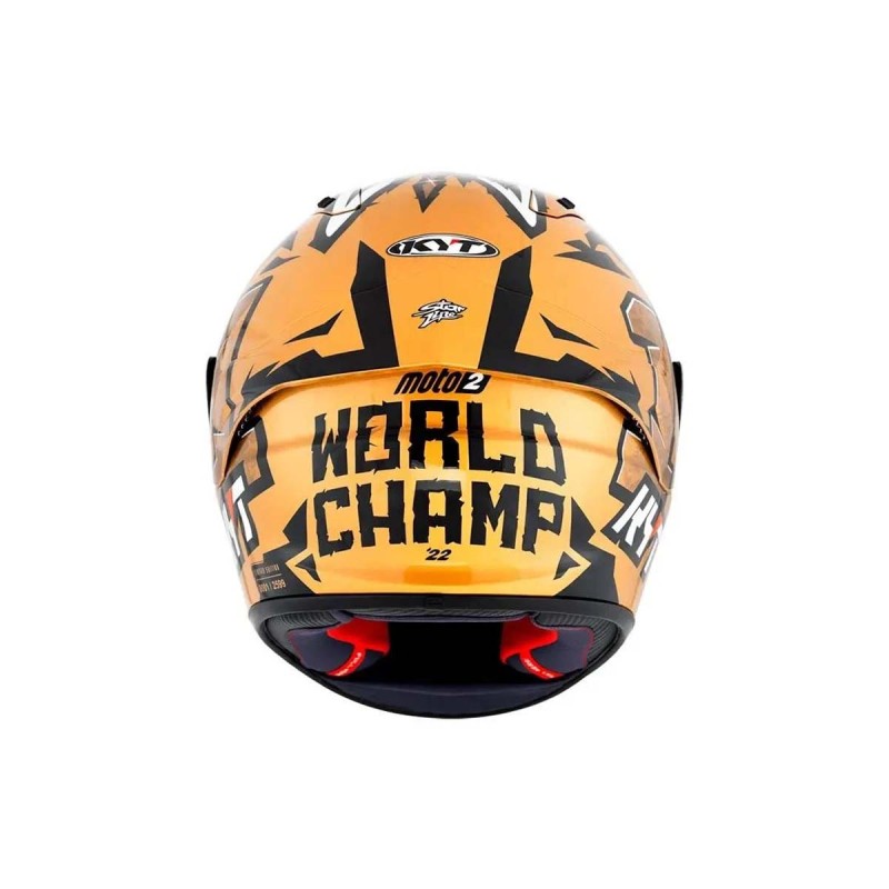 Cascoloco tiene el orgullo de presentar la EDICIÓN LIMITADA del casco NZ RACE Augusto World Champion 2022. Este casco es una réplica exacta del modelo que llevó a Augusto Fernández a la victoria en el campeonato de Moto2. Con su espectacular gráfica dorada diseñada por Starline y un exclusivo color oro metálico, cada unidad es una verdadera pieza de colección que celebra la histórica victoria del campeón. Si buscas un casco de moto único que combine historia y diseño, esta es tu oportunidad.